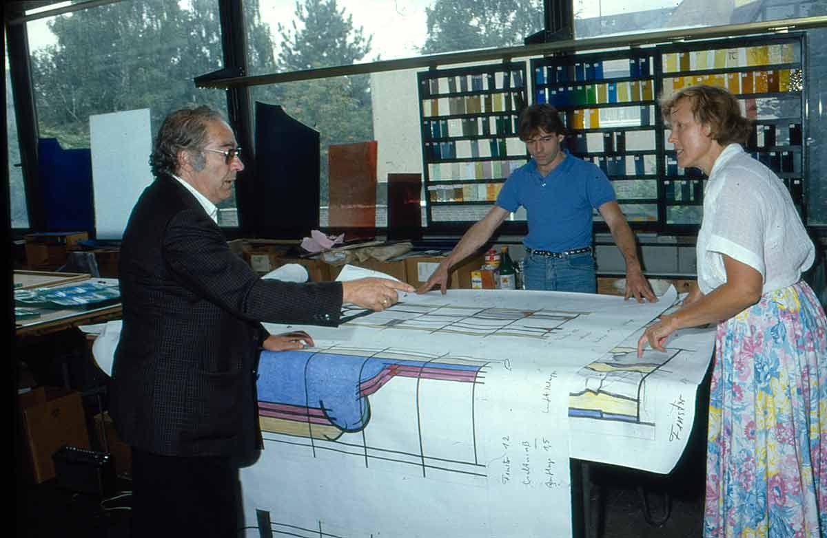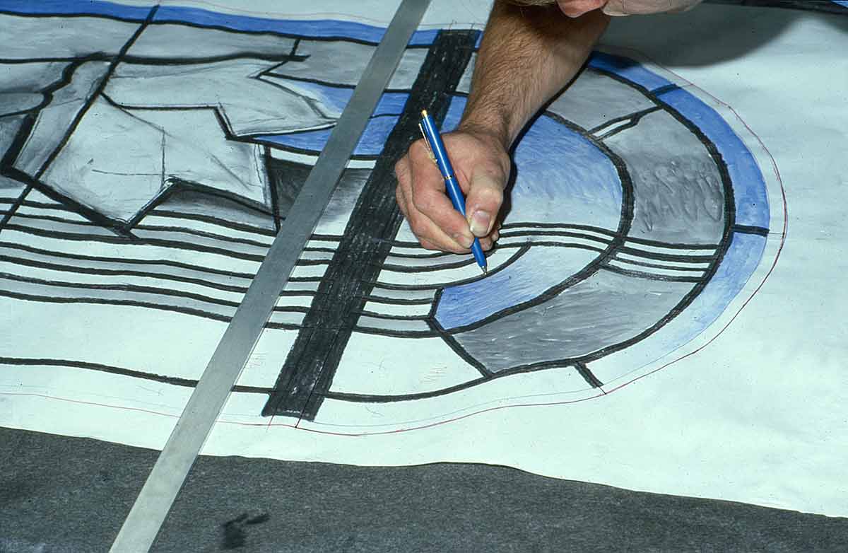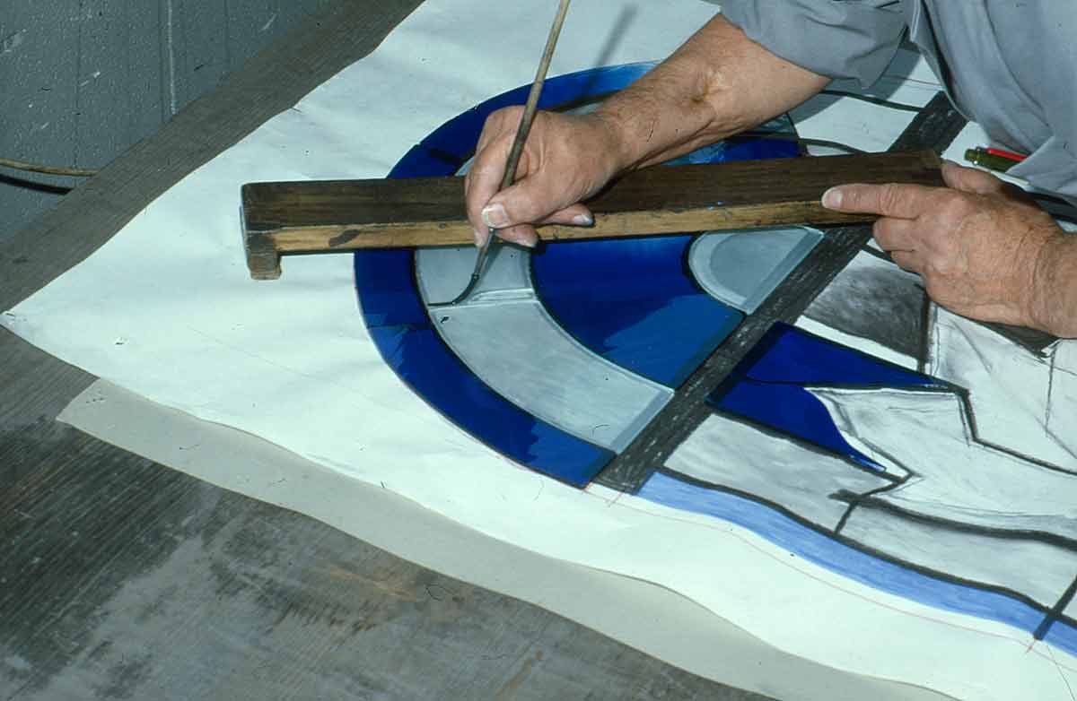 Die Glasmalerei ist ein komplexes Kunsthandwerk aus vielen Arbeitsschritten, die stets in enger Abstimmung zwischen Werkstatt und Künstler entstehen. Verfolgen Sie hier beispielhaft den Weg einer Glasmalerei vom Entwurf des Künstlers bis zum fertig eingebauten Glasfenster in einer Kirche: