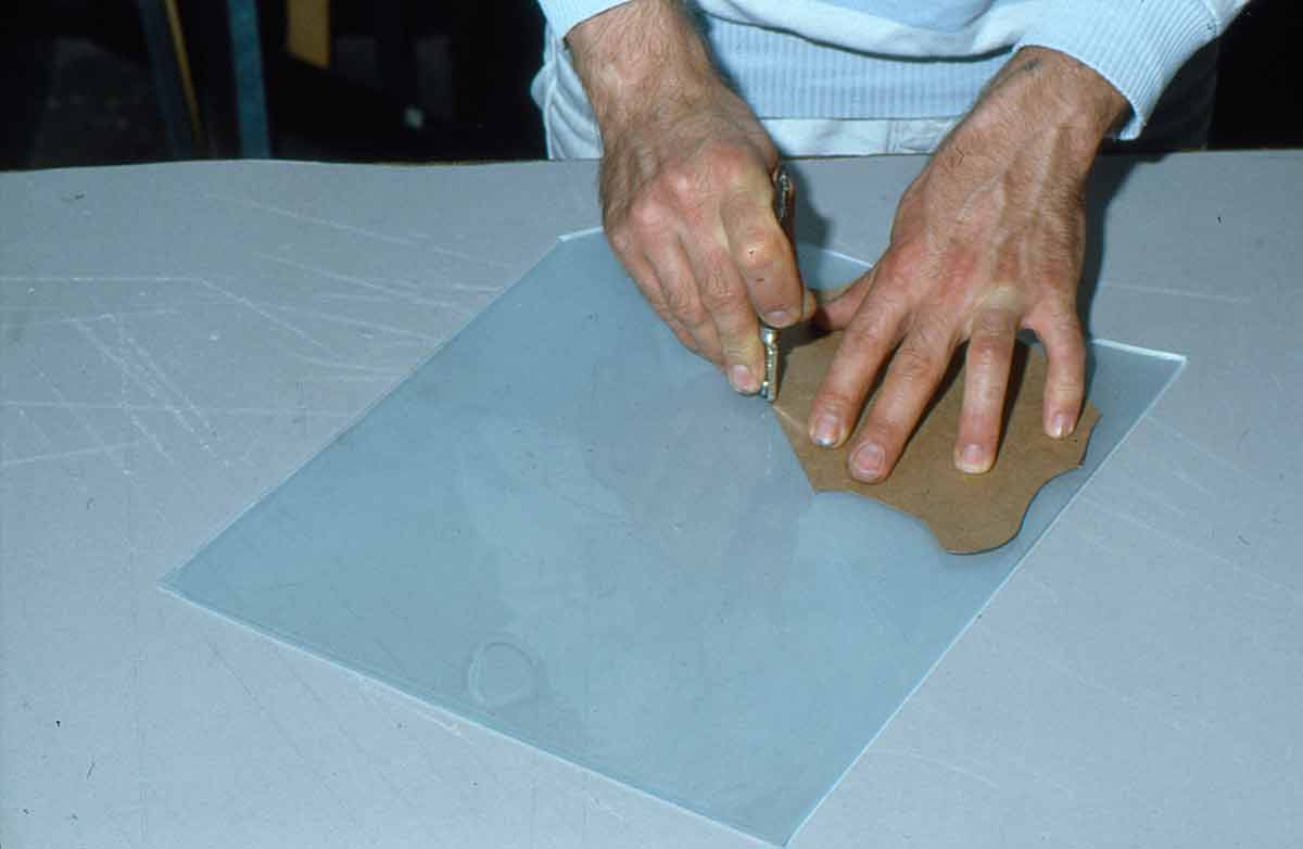 6 | Entlang der Schablone wird das Glas zugeschnitten